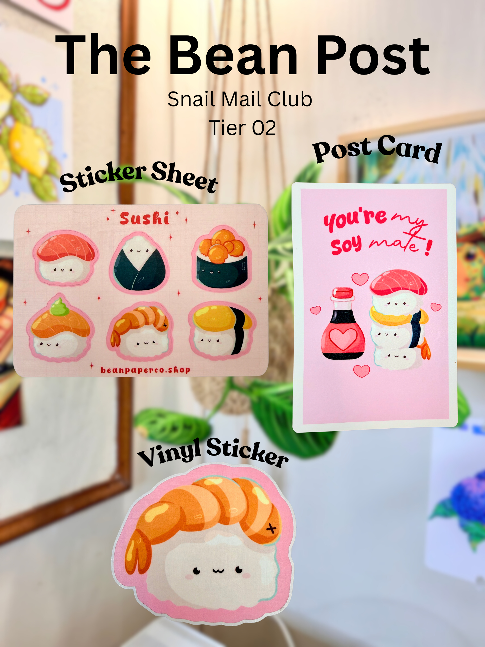 This sushi-themed issue of The Bean Post Mail Club is designed to bring a little joy to your day. Think cute sushi illustrations, playful stationery, and small paper treasures made for planners, journal lovers, and anyone who still loves the magic of opening real mail.